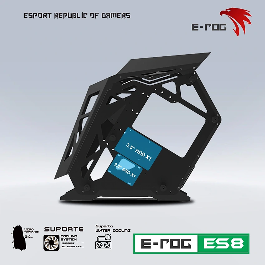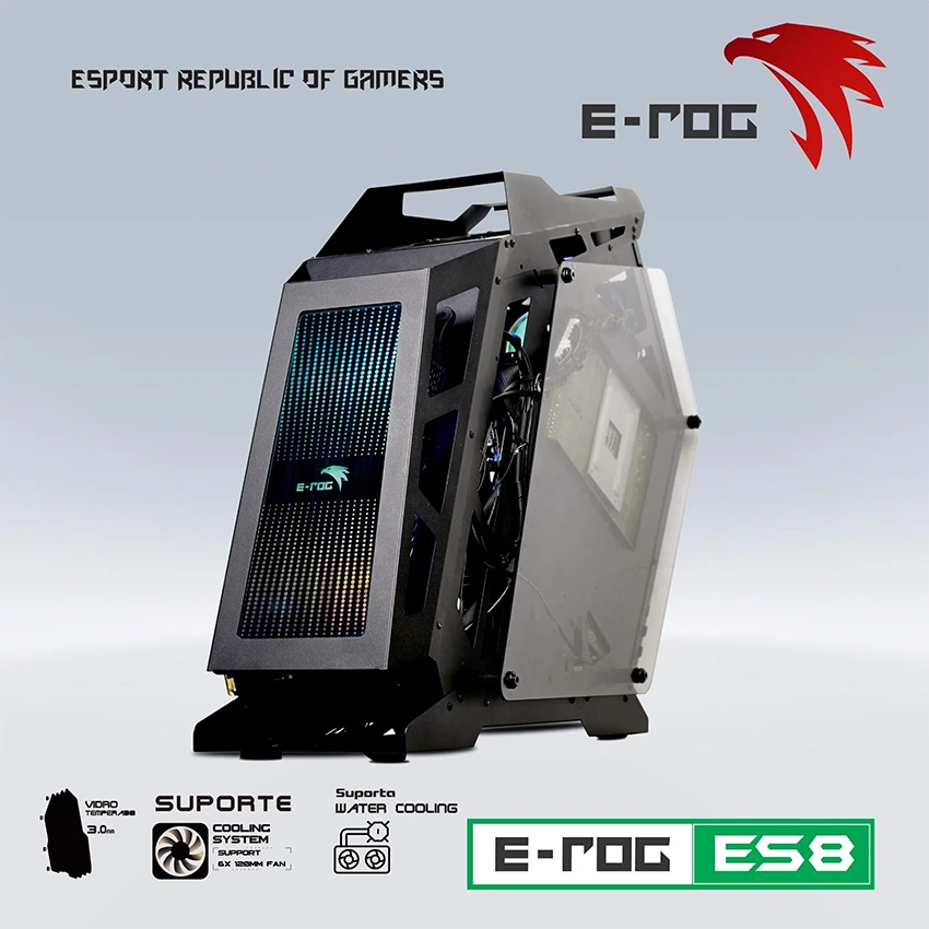 ES8 với các đặc trưng khung vỏ thiết kế mở sử dụng CNT thủ công CNC & NCT cho chi tiết chính xác để khi lắp các thành phần cấu kiện máy tính vào chuẩn nhất. Chất liệu bộ khung ES8, sử dụng vật liệu chất lượng hàng đầu có độ dày 1 – 0,8mm với bề mặt màu xám kim loại trang nhã 2 mặt bên slide A và slide B trang bị kính cường lực.