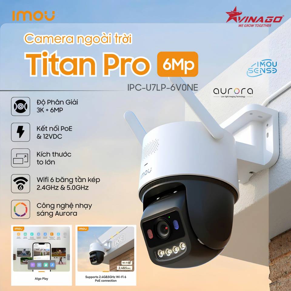 Imou Titan Pro 6MP là mẫu camera an ninh ngoài trời thuộc phân khúc cao cấp, mang đến khả năng giám sát sắc nét với độ phân giải 6MP và hỗ trợ quay – quét (Pan & Tilt) toàn diện. Được trang bị công nghệ hình ảnh ánh sáng yếu (Low-light Imaging), Titan Pro 6MP cho chất lượng màu sắc rực rỡ ngay cả trong điều kiện thiếu sáng. Bên cạnh đó, camera hỗ trợ Wi-Fi 6, PoE, đèn cảnh báo đỏ-xanh, còi báo động 125dB cùng thuật toán AIgo Play độc quyền của Imou – một giải pháp an ninh toàn diện cho gia đình và doanh nghiệp.